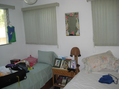This is the guest room. It has a full size bed and a twin size platform bed with drawers under. Sorry about the mess but we were just packing up to go away for the weekend when I took these pictures.